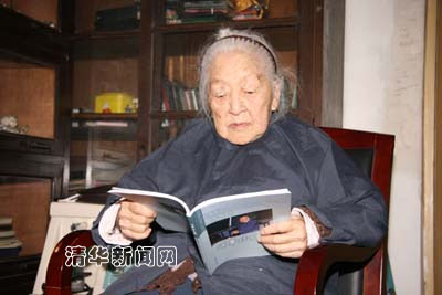 何泽慧翻阅新出版的《清华校友通讯》
