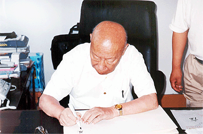 庄逢甘伏案题字
